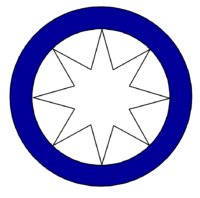 (Fieldless) A mullet of eight points argent within and conjoined to a annulet azure | ||||||
