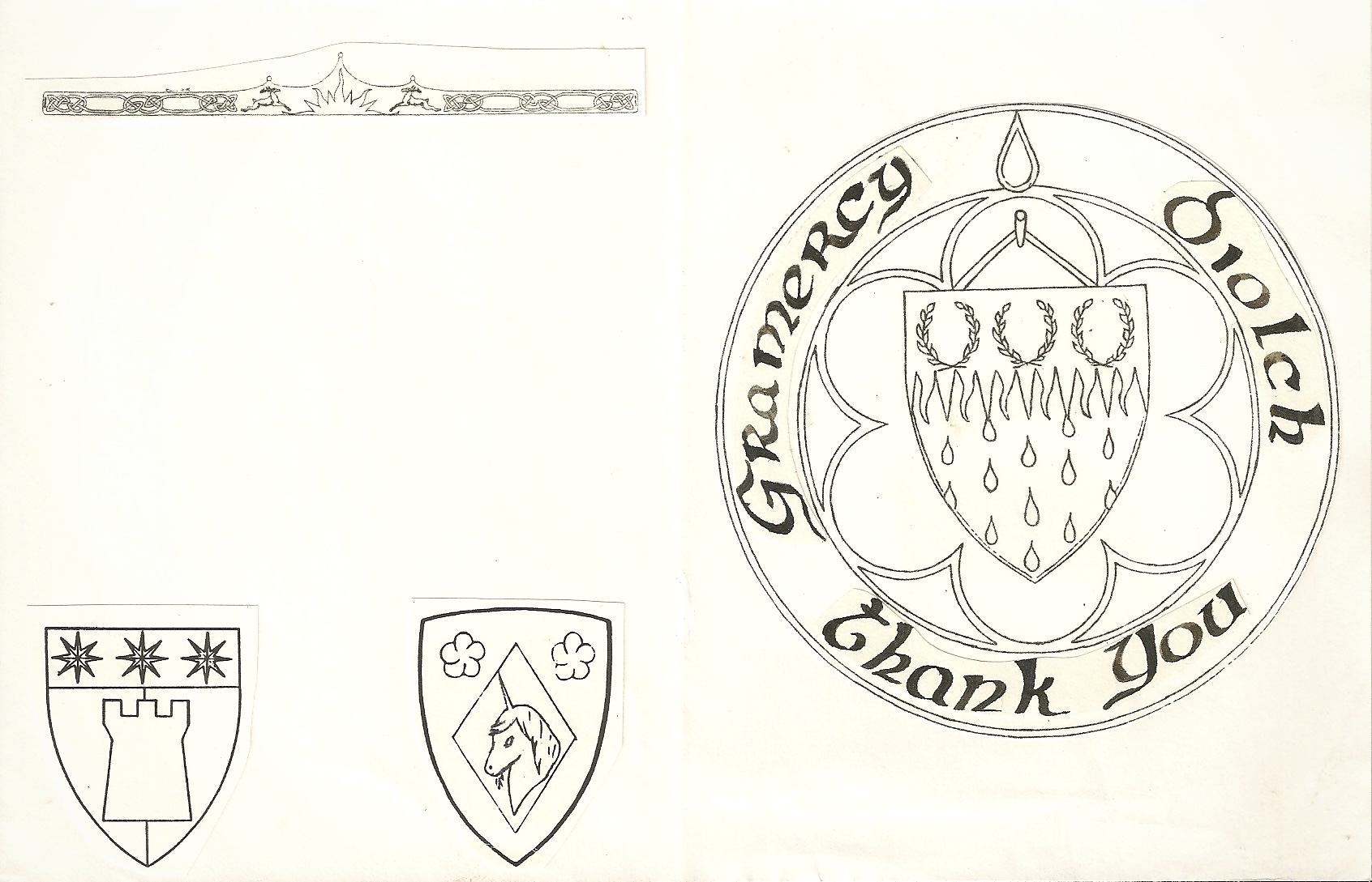 | 15:11, 25 November 2025 | GMThankYou1993A.jpg (file) | 399 KB | SirRichard | Thank you card from Baron Richard and Baroness Gwendolyn Fitzalan as Baron and Baroness of Glymm Mere from 1993-1995. Front shows Glymm Mere baronial arms with words: Gramercy, Diolch, and Thank You. Gramercy is thanks for Richard’s Anglo-Norman 12th-13th century persona. Diolch is Welsh for Gwendolyn’s persona. Back shows the Coronet of Glymm Mere across the top and at the bottom the personal arms of Richard and Gwendolyn. | 1 | |