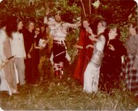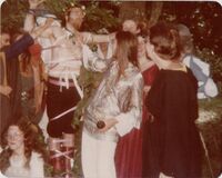 Several gentlefolk had wagonpooled to this Ithra, which was held in Lions Gate, from Adiantum. Among these folk were the castellans, later the Baron and Baroness, of Adiantum, Ulfheddin and Reginleif, and several newbies, all but one very new indeed. Naturally enough on the journey home the foundation of Sir Edward's Academies was discussed amidst many sly remarks and puns. Then one of the newbies suggested that it might be amusing for the women of An Tir to abduct Sir Edward during the upcoming war and carry him off into the surrounding woods. Ulfheddin and Reginleif, having befriended the Viscount years before, assured the others that he would be amused and flattered by the plan. Elan of Dragon's Tryst was appointed to organize the abduction.