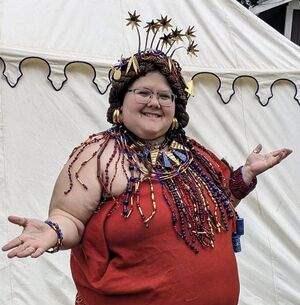 Gracia is currently serving as seneschal for Crow's Gate/Fire Mountain (since 2022). She has been the Event Steward for Harvest Feast (BAO), Honey War (GM), Crows Feast (FMK), and Celtic Bardic (BAO). She served on the staff of a variety of events, from helping with cooking for Yule 2022, to serving on gate staff for a variety of events, to creating event tokens for half a dozen events. Gracia also served as Royal Scribe on site for Autumn War 2025. She has served as Chronicler for BAO from 2020 to 2022, passing the baton to Mycol Reamer after she moved to Pacific County. An example of an edition of the Blatherings she produced is available here.