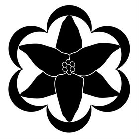 (Fieldless) A lily affronty within and conjoined to six crescents conjoined in annulo sable.