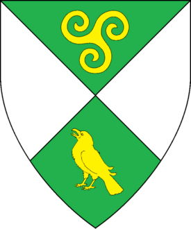 Approved: Per saltire vert and argent, in pale a triskelion of spirals and a raven close Or |