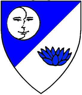 ![]() Per bend sinister azure and argent, a moon in her plenitude and a lotus flower in profile counterchanged. |